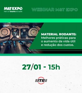 Material rodante: Melhores práticas para o aumento da vida útil e redução dos custos. Dia 27/01, quinta-feira, às 15h, a M&T Expo apresenta ao vivo o bate-papo