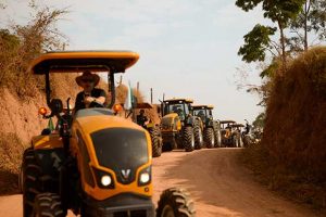 Tratores chegam a Aparecida do Norte depois de quatro dias de viagem Comboio organizado pela Valtra saiu de Paraisópolis Depois de quatro dias e