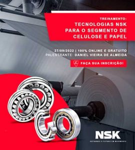 Tecnologias para rolamentos no setor de celulose e papel são temas de webinar gratuito Especialista da NSK Brasil apresentará pontos importantes para utilização e manutenção