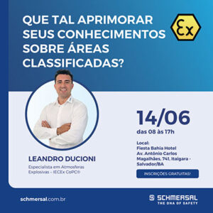 Junho: Schmersal promove treinamentos gratuitos sobre prevenção de explosões em áreas classificadas Para fazer das indústrias um ambiente cada vez mais seguro, a Schmersal, empresa