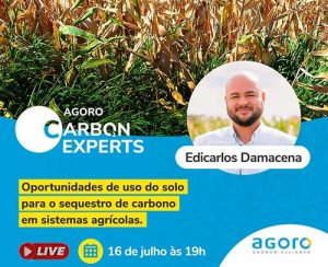 Terceiro encontro do projeto Agoro Carbon Experts aborda sequestro de carbono em sistemas agrícolas Live acontece nesta terça-feira, dia 16, às 19h, com transmissão online