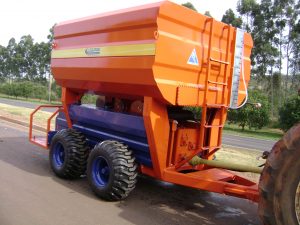 A usina móvel de asfalto Rinnus Trailer, desenvolvida pela J. Colombo, é rebocada e acionada por trator. A esteira transportadora é acionada por motor hidráulico,