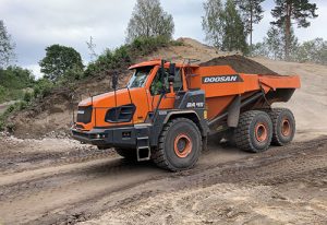 Caminhões basculantes Hyundai Doosan aliam tecnologia e alta capacidade de carga Modelos DA 45 e DA30 mantêm o monitoramento de suas funções durante a operação