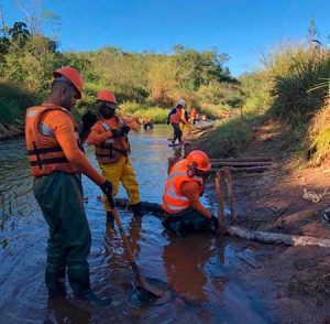 Cientistas da Setac World definem como excepcional projeto do Brasil que recupera rios degradados Técnicos do projeto ReNaturalize instalando troncos de árvores em trecho