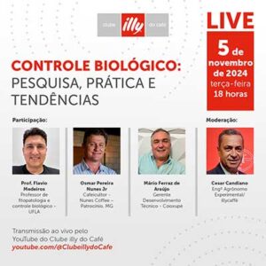Live Controle Biológico: Pesquisa, Prática e Tendências Promovida pelo Clube illy do Café no dia 05 de novembro, a live reúne especialistas para discutir a
