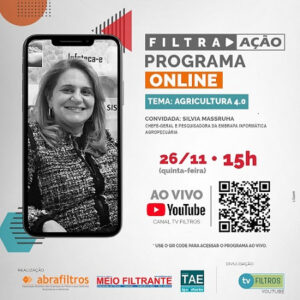 Silvia Massruha, chefe-geral e pesquisadora da Embrapa Informática Agropecuária, apresenta o tema, no dia 26 de novembro, às 15h, na TV Filtros, no YouTube. O