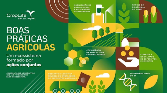 A campanha de Boas Práticas Agrícolas (BPAs) conduzida pela Croplife Brasil visa conscientizar produtores, trabalhadores rurais e consumidores sobre o uso responsável das tecnologias no campo. O objetivo é estabelecer uma iniciativa permanente para fortalecer a relação entre a produção sustentável de alimentos e os desafios globais de sustentabilidade que impactam o agronegócio, além de capacitar o setor com ferramentas e informações sobre essas práticas, que são fundamentais para gerar impactos positivos na agricultura e no planeta. Além disso, a entidade mantém a plataforma de treinamento Conecta, que possui dois módulos (9 e 10) destinados ao manejo integrado de pragas, entre outros que abordam o uso de tecnologia de aplicação segura e correta.
