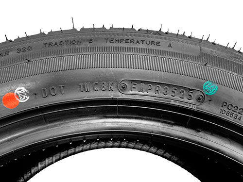 Todos os pneus possuem uma sequência alfanumérica de identificação em sua lateral, cujo quatro últimos dígitos indicam a semana e o ano de fabricação. Em alguns pneus, essa sequência é precedida pela sigla DOT (Department of Transportation), identificando que o pneu atende às normas do órgão norte-americano: