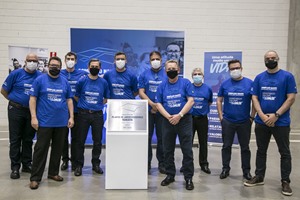 Sérgio L. Carvalho e Jorge Schertel participam de evento interno para celebrar a inauguração oficial da nova planta de amortecedores Nakata, que se integra ao centro de distribuição formando o novo Complexo em Extrema-MG.