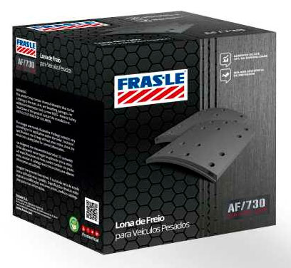 Produzida de acordo com a geometria dos produtos originais, as lonas de freio Fras-le AF/730 inclui alojamento de rebite padrão montadora e indicador de desgaste para alguns modelos. É ecologicamente correta, pois não utiliza substâncias tóxicas em sua composição, sendo constituída à base de fibras e sem amianto, e permite conforto em frenagens silenciosas, com índices mínimos de ruídos e vibrações.