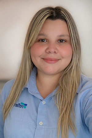 Na unidade operacional da Reflorestar em Três Lagoas (MS), Camila Matias dos Santos, de 29 anos, atua como técnica em Segurança do Trabalho e descreve a escolha pela profissão como uma decisão ligada ao cuidado com as pessoas.