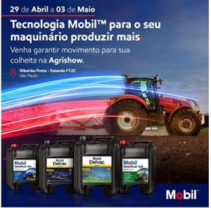 Agrishow 2024: Lubrificantes Mobil apresentam produtos e soluções inovadoras e sustentáveis para o agronegócio brasileiro Linha completa de lubrificantes e graxas, produzida com tecnologia exclusiva