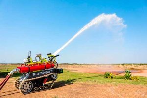 Ambipar apresenta na ROG.e robô que apaga incêndios por até 10 horas Equipamento desenvolvido pela empresa é uma das tecnologias usadas no combate aos incêndios